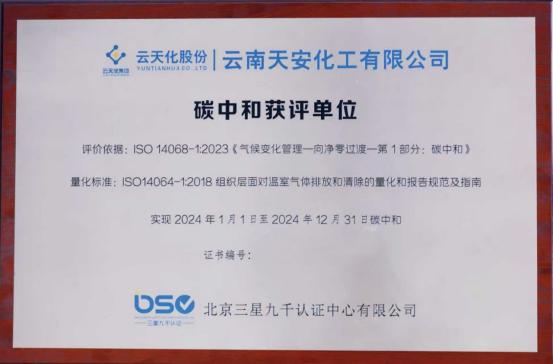在“雙碳”戰(zhàn)略縱深推進(jìn)的關(guān)鍵階段,云南天安化工有限公司硫酸脫鹽水裝置通過北京三星九千認(rèn)證中心有限公司的碳中和評價,成為云南省磷化工行業(yè)首家實現(xiàn)裝置“碳中和”的獲評單位。